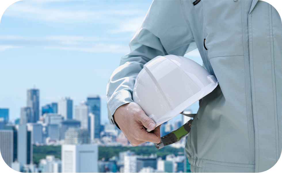 株式会社〇〇では、〇〇市を拠点に置き〇〇工事を行っています。建物と人々の生活を支えるこの施工に、責任と誇りを持っています。確かな技術を持った職人とパワーあふれるフレッシュなメンバーと共に、安心・安全の施工をお届けいたします。